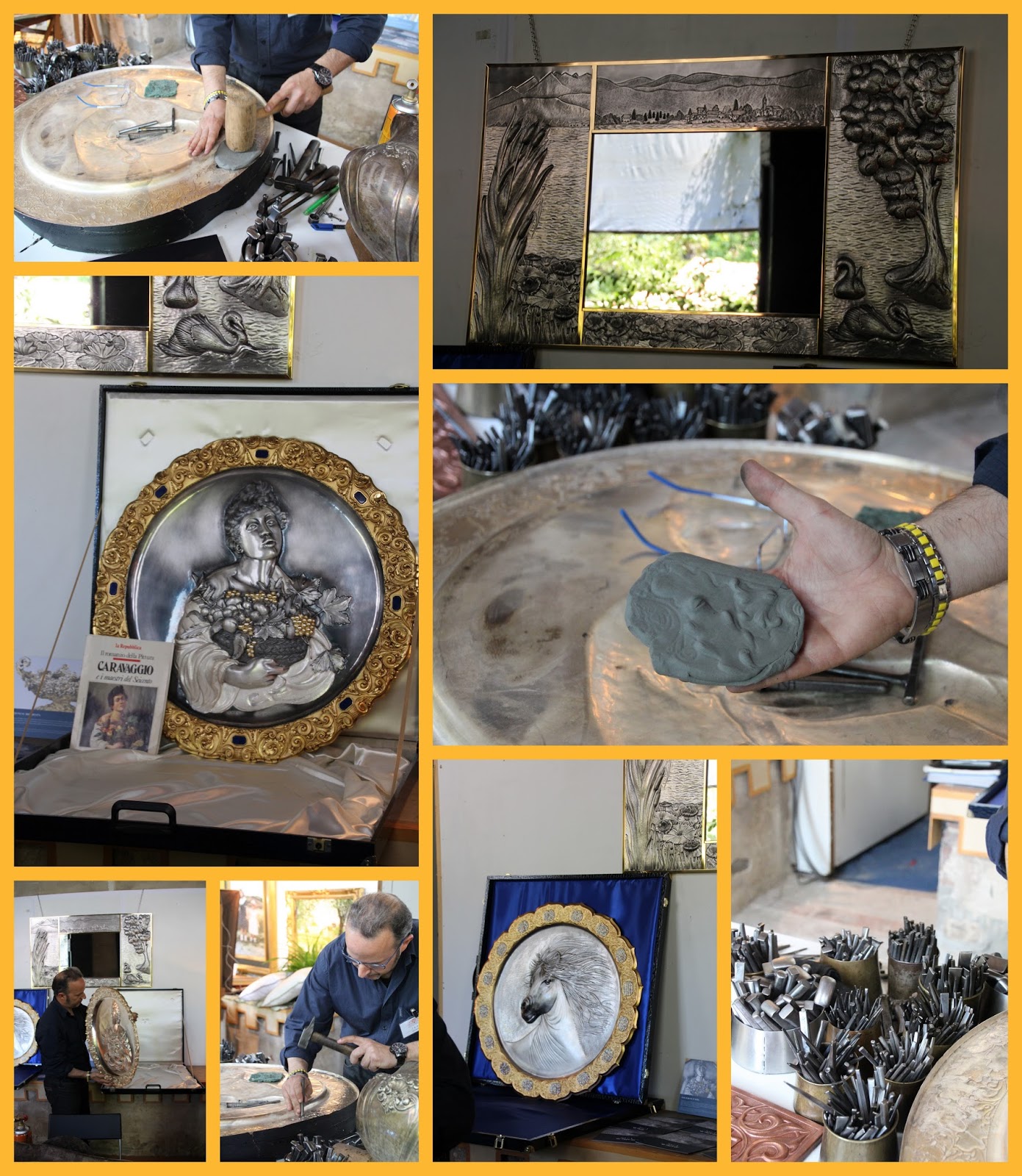 Z wielkim zainteresowaniem obejrzałam tłoczenie metalu na zimno, wynikiem czego były przestrzenne wersje znanych dzieł, lub motywów. Rzemieślnik sam przygotował młoteczki, dzięki którym uzyskuje różne różne powierzchnie. Drogie metale, kamienie i czas wykonania pracy windują jej cenę do około 30 tys. euro. Nie śmiałam zapytać, ilu klientów na rok znajduje, dowiedziałam się jedynie, że większość z nich mieszka w krajach arabskich lub ... Rosji.